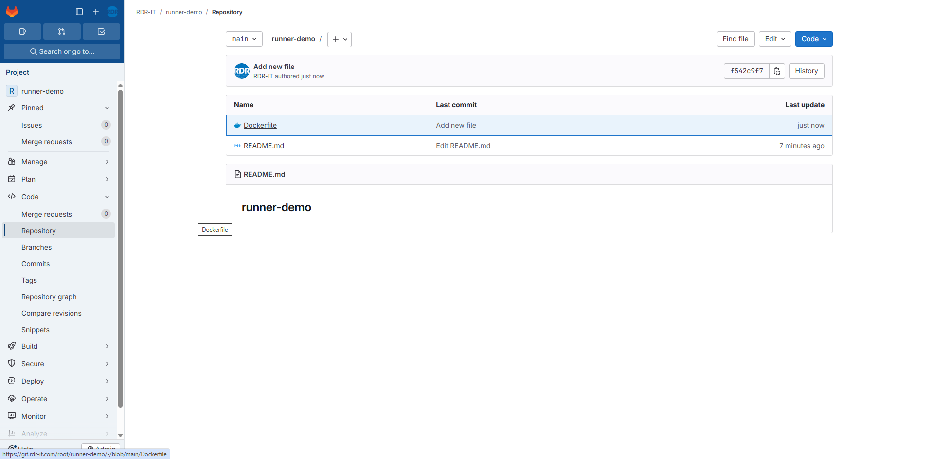 Le dépôt se trouve ici : https://git.rdr-it.com/root/runner-demo