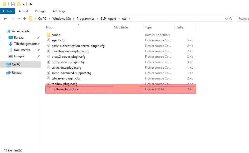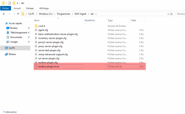 La manipulation sur Windows est similaire, les fichiers de configuration de GLPI Agent se trouve à l’emplacement suivant : C:\Program Files\GLPI-Agent