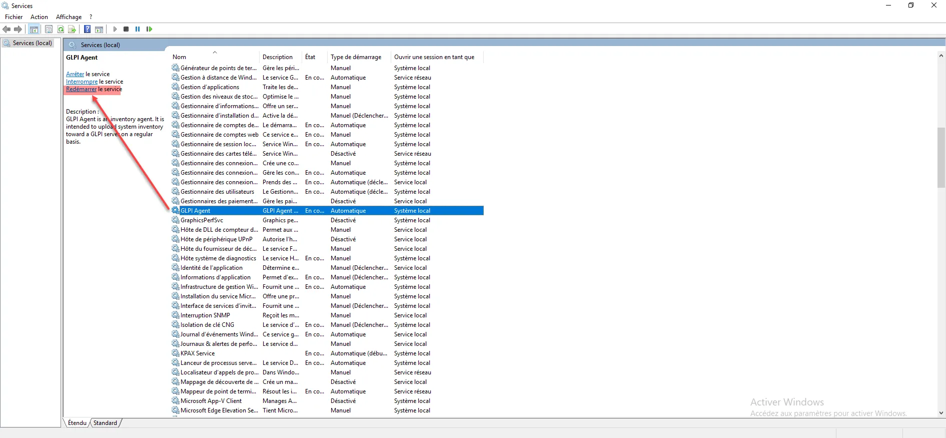 Redémarrer ensuite le service GLPI-Agent :