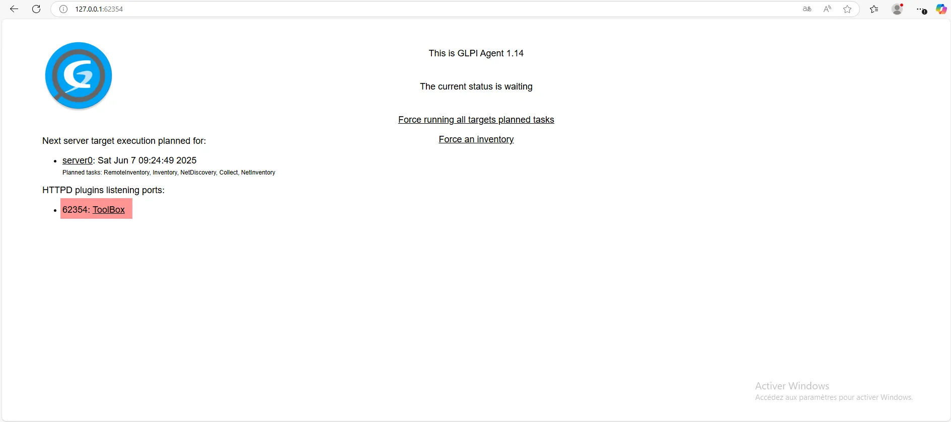 sudo systemctl restart glpi-agentActiver la Toolbox de GLPI Agent sur Windows