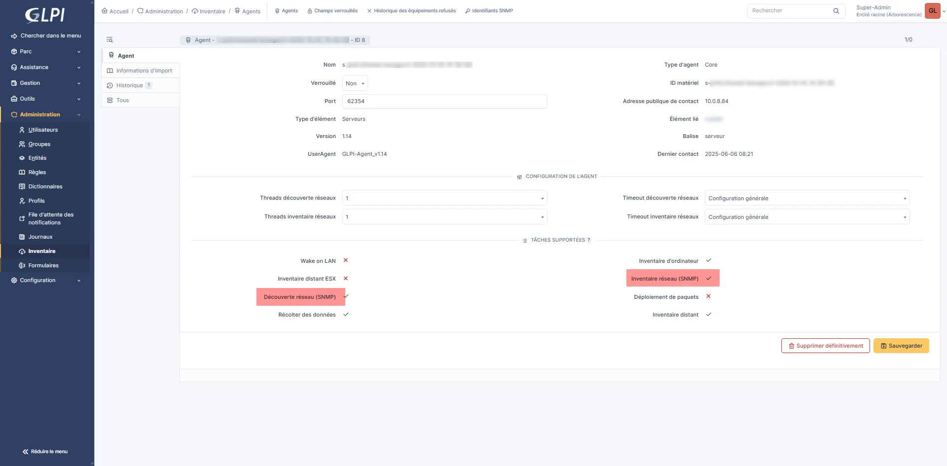 Si vous ne voyez pas les fonctionnalités de Découverte et inventaire réseau actives, forcer un inventaire pour la prise en compte des modifications.