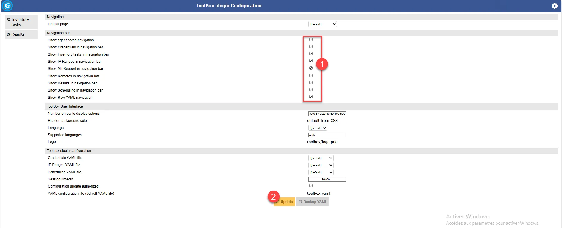 Activation de la toolbox de GLPI Agent