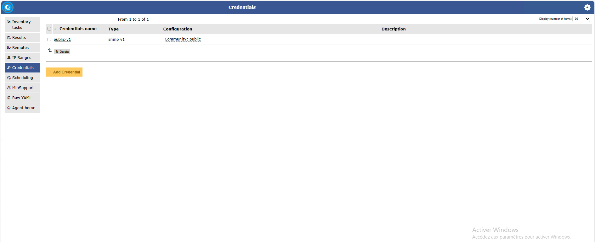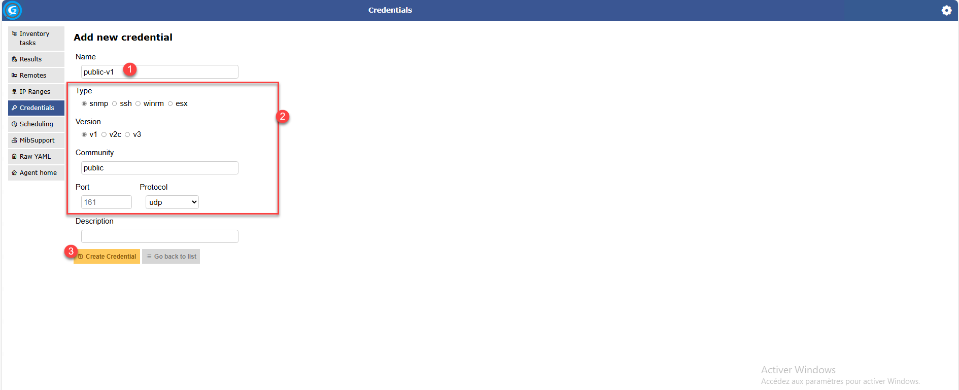 Ajouter un Credential de type SNMP