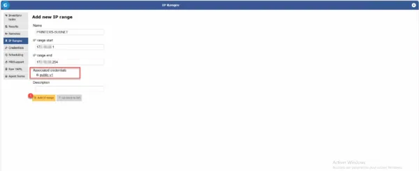 - IP Ranges : c’est la plage d’adresse IP qui sera scannée pour découvrir et inventorier les équipements réseaux.