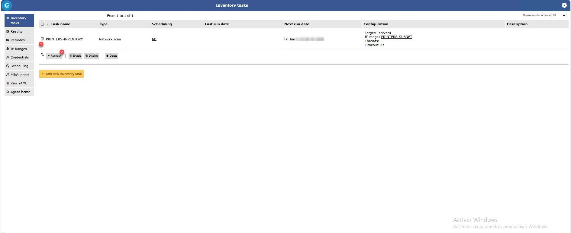 Configurer une tâche d’inventaire réseau