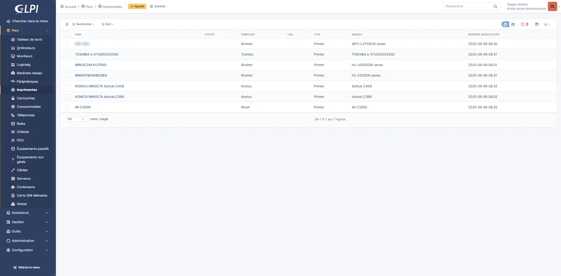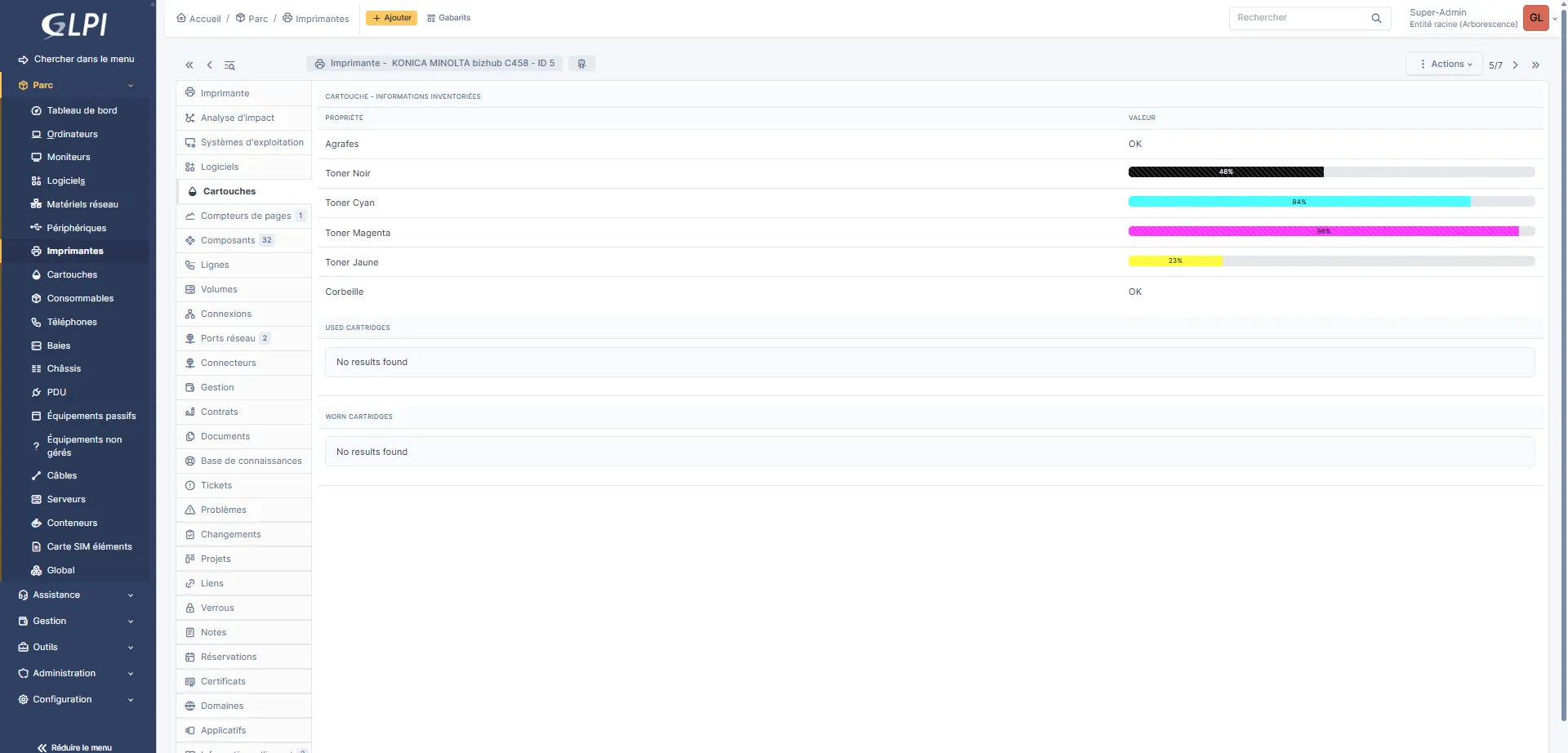 En fonction des modèles, vous avez aussi le niveau des cartouches qui est disponible dans GLPI 11.