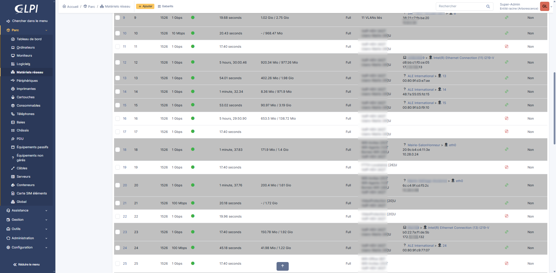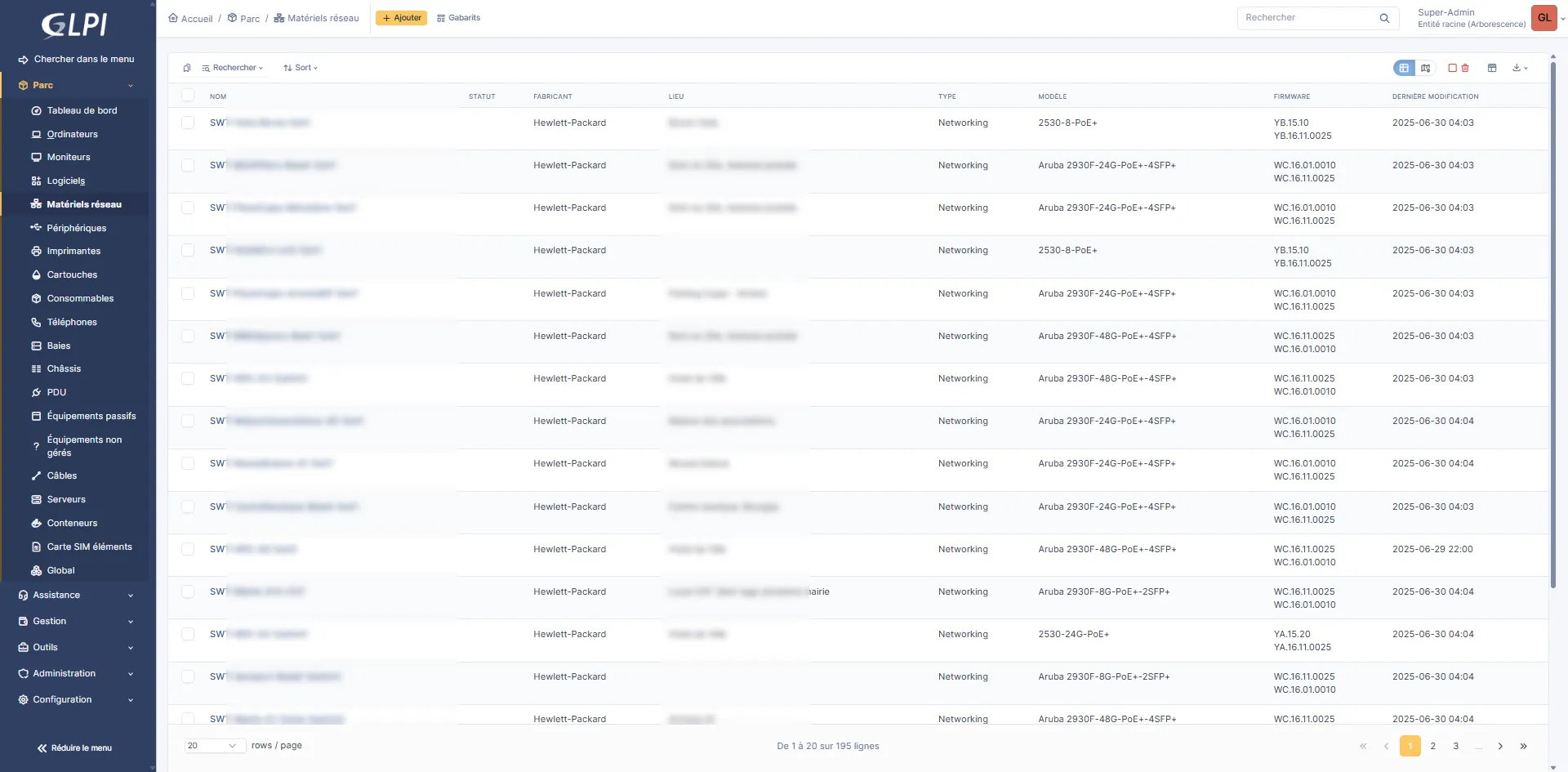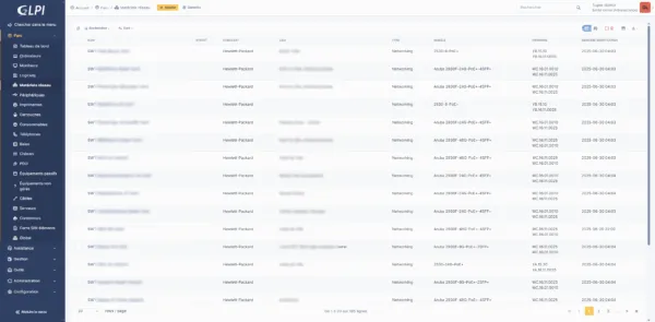 Pour les équipements réseaux comme les switchs, on les retrouve dans Matériels réseau depuis le menu Parc.