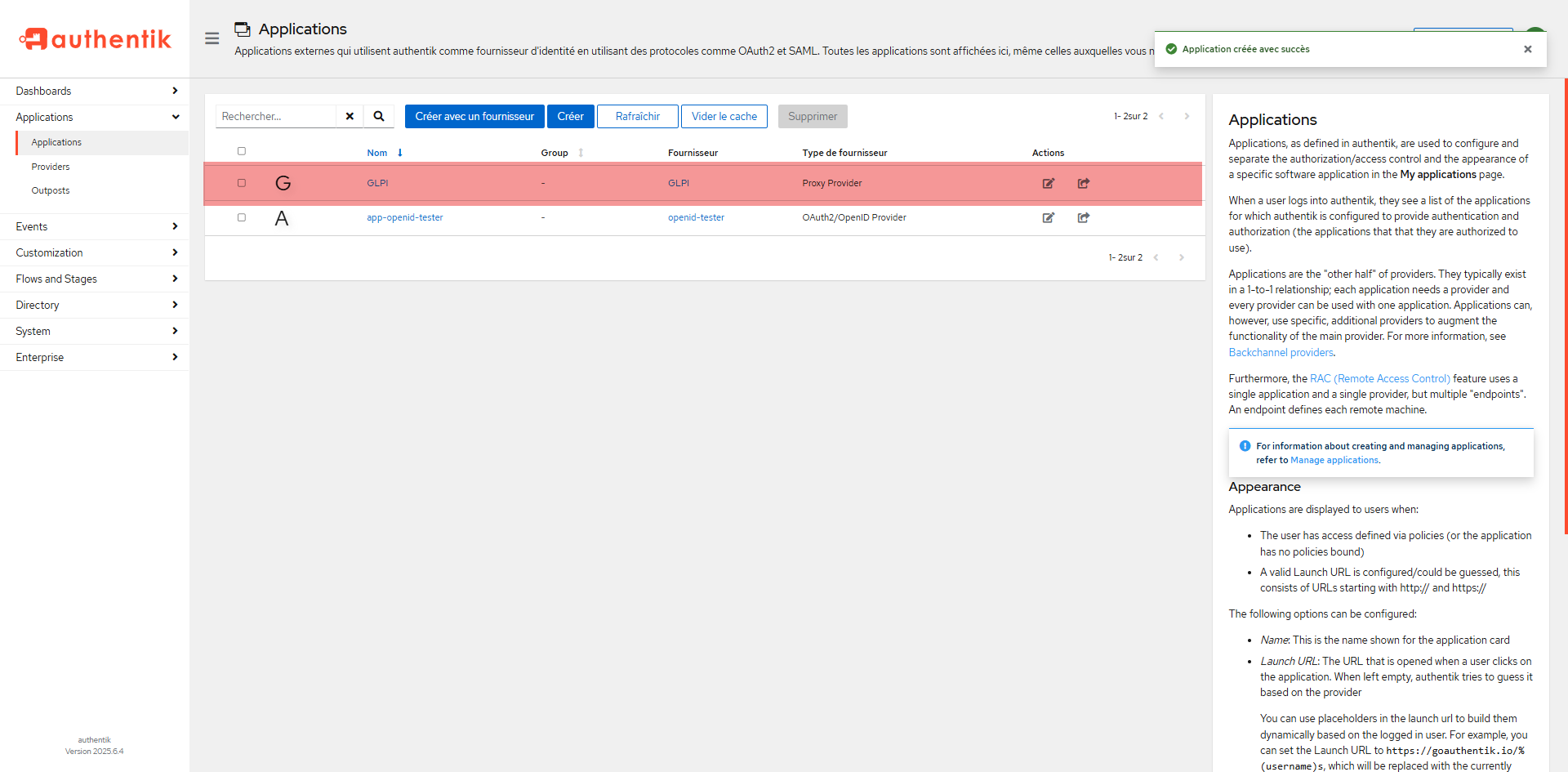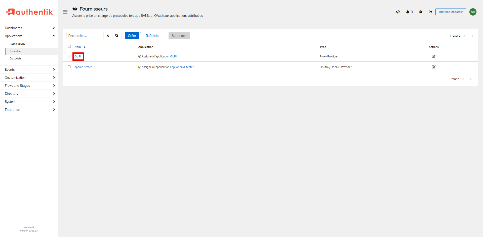 Pour commencer, nous allons ajouter le provider et l’application GLPI 11 dans Authentik.