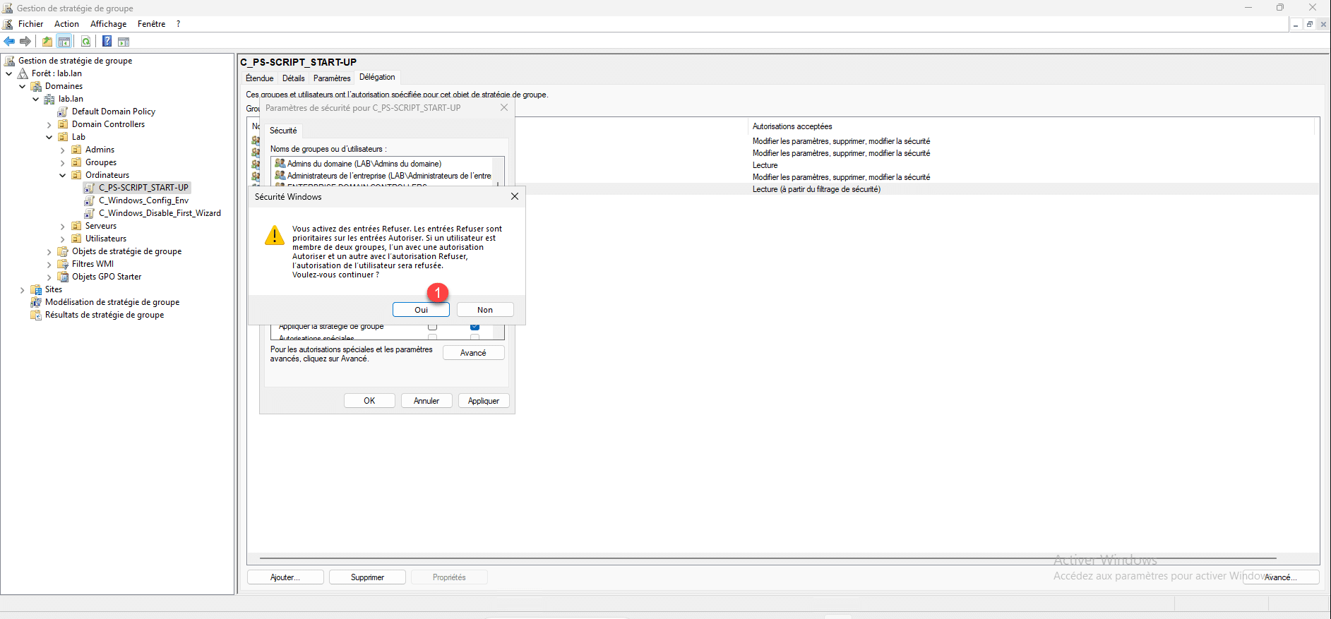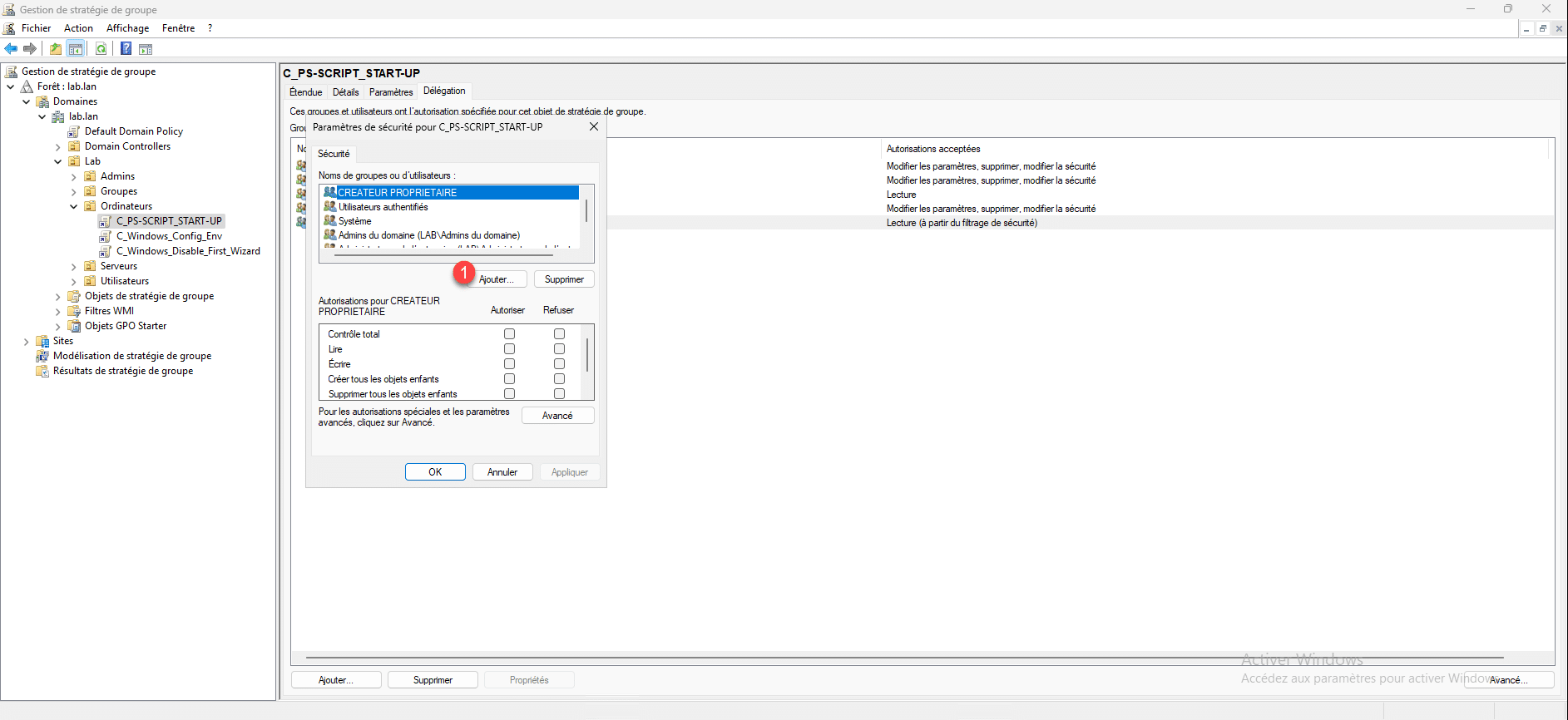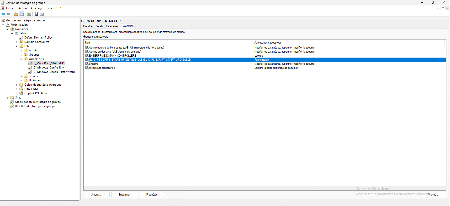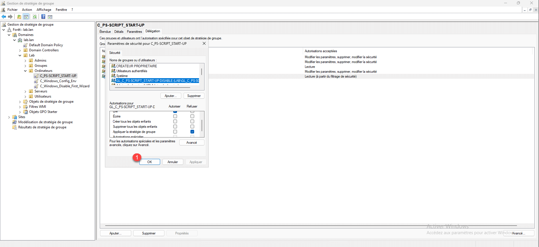 Dans les délégations de la GPO, on retrouve le « droit » que l’on a ajouté.