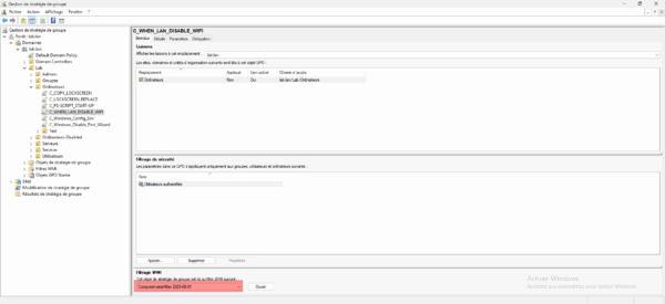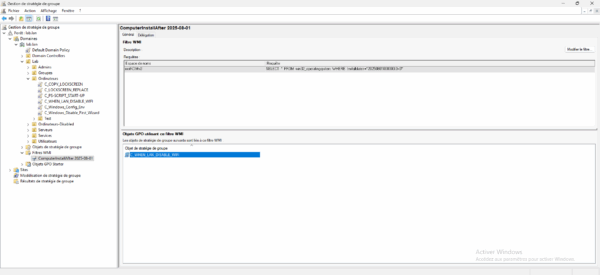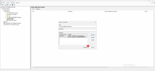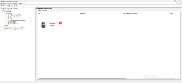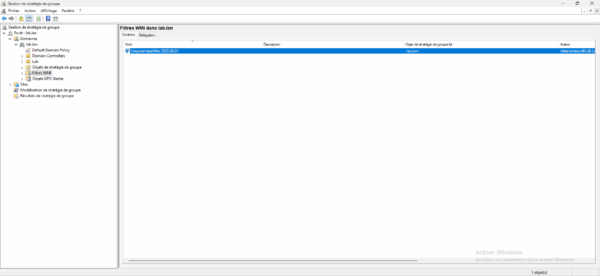 Depuis la console Gestion de stratégie de groupe, aller sur le dossier Filtre WMI 1.