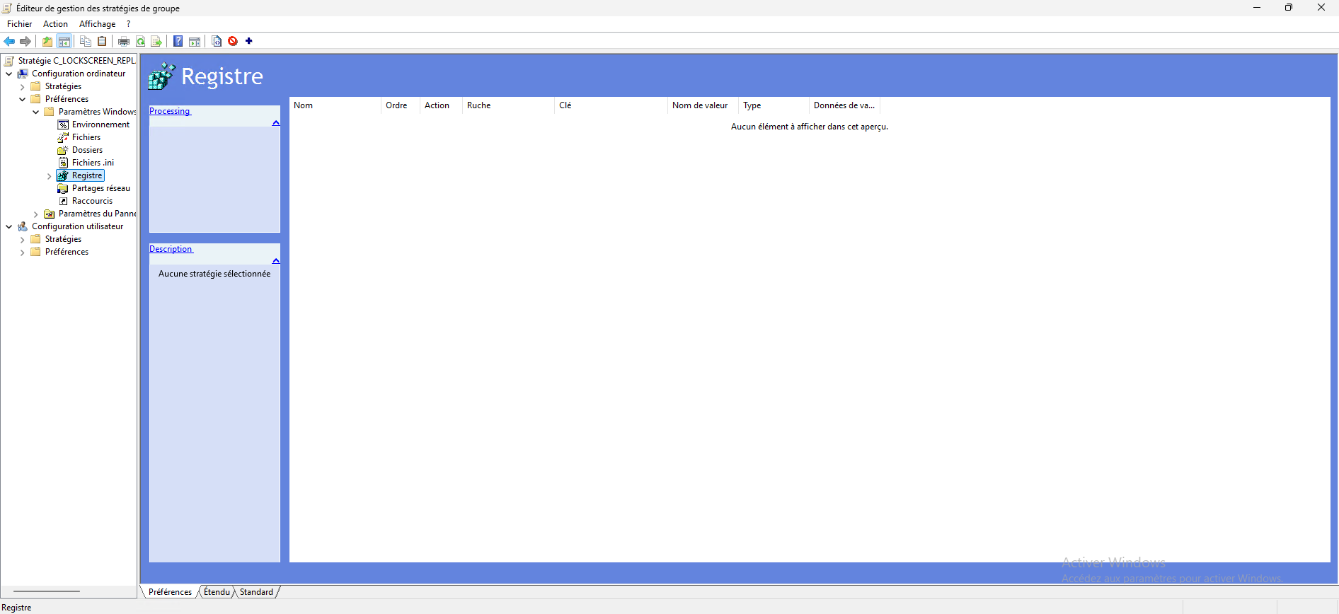 Aller à l’emplacement suivant : Configuration ordinateur / Préférences / Paramètres Windows / Registre