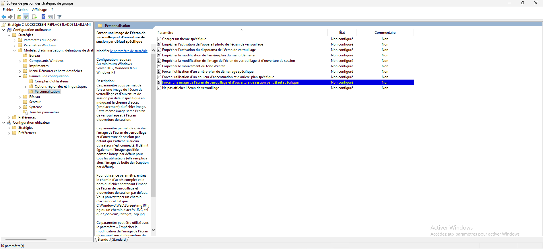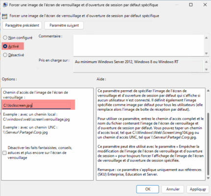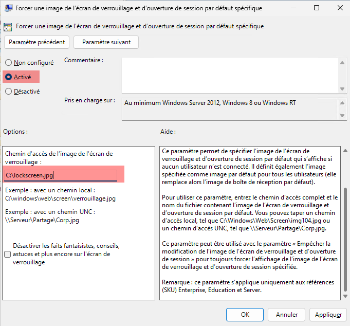 Si vous avez un parc avec les deux versions Pro et Entreprise, il est possible de faire une seule stratégie de groupe pour le changement de l’image de l’écran de connexion.