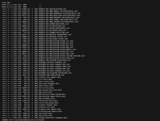 apt install modsecurity-crs -yUne fois installé, les fichiers des règles se trouvent à l’emplacement suivant : /usr/share/modsecurity-crs/rules.