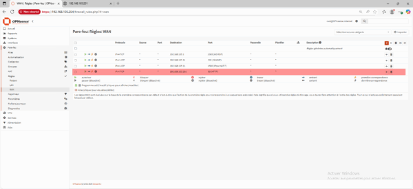 Au passage, dans la partie Règles dans la section WAN, on peut voir qu’une règle a aussi été créé pour autoriser le trafic sur le port 80.