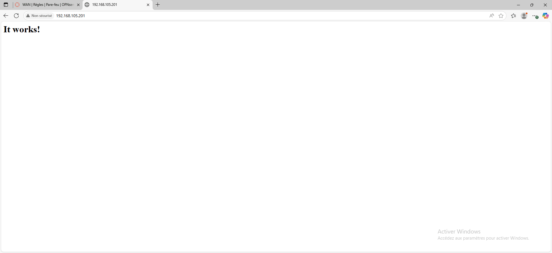 Dernière étape pour la valider le bon fonctionnement va être de tester la publication en passant par l’interface WAN du pare-feu.