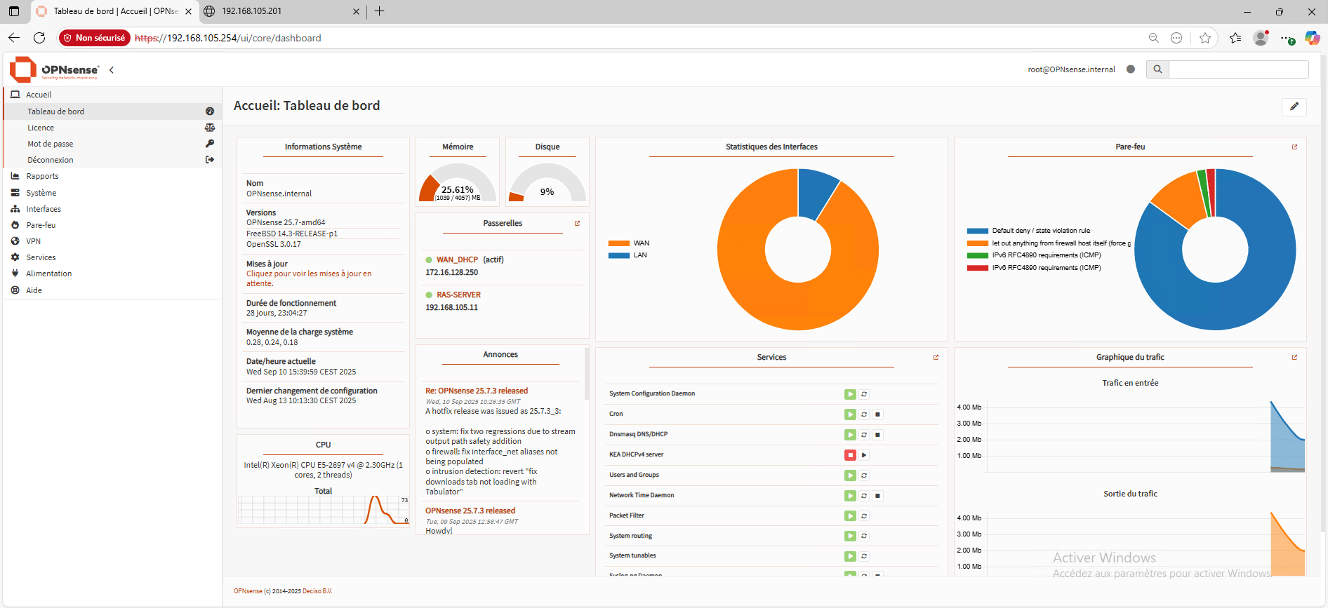 Commencer par aller sur l’interface Web du pare-feu OPNsense.