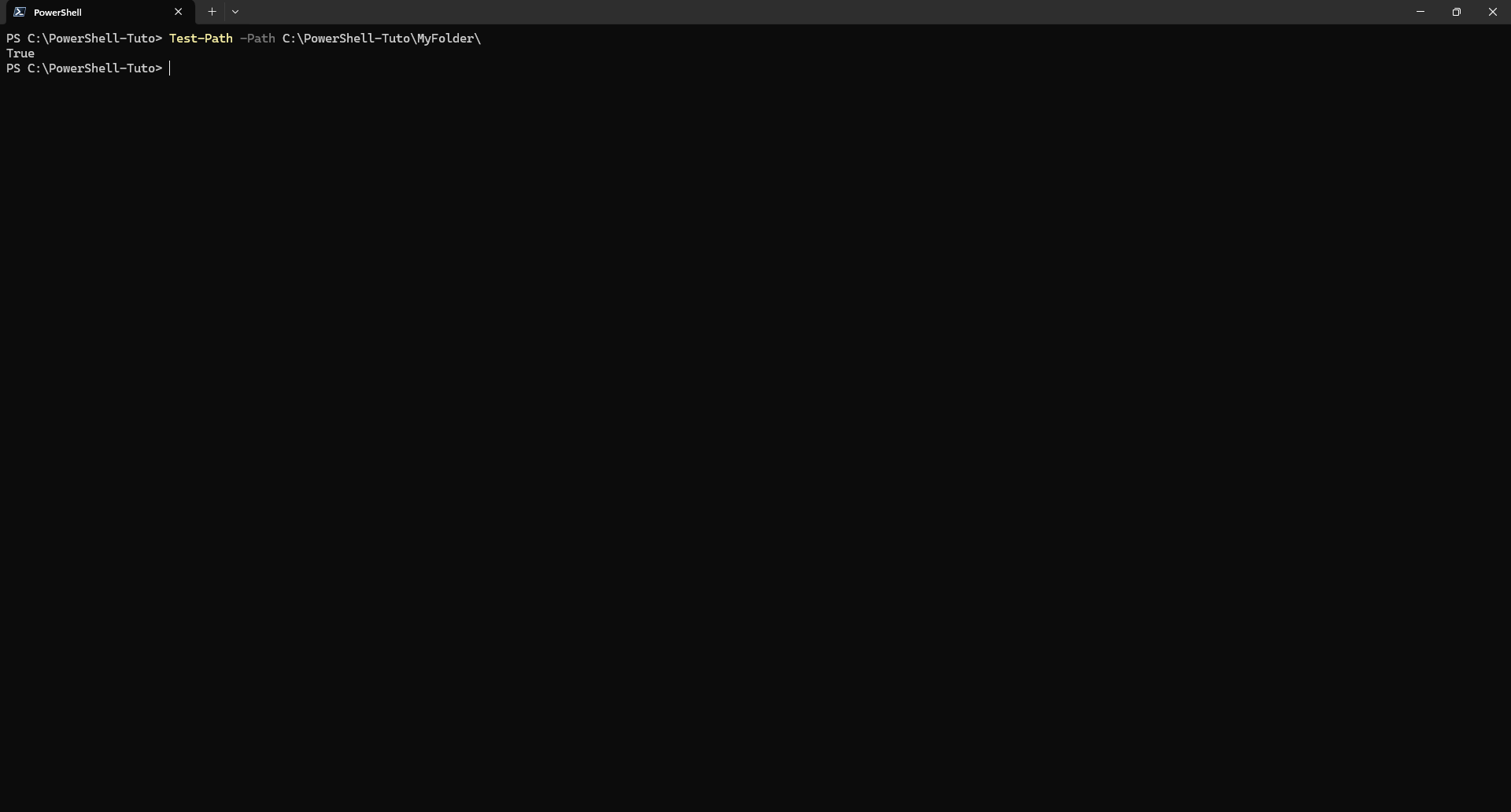 Test-Path -Path C:\PowerShell-Tuto\MyFolder\