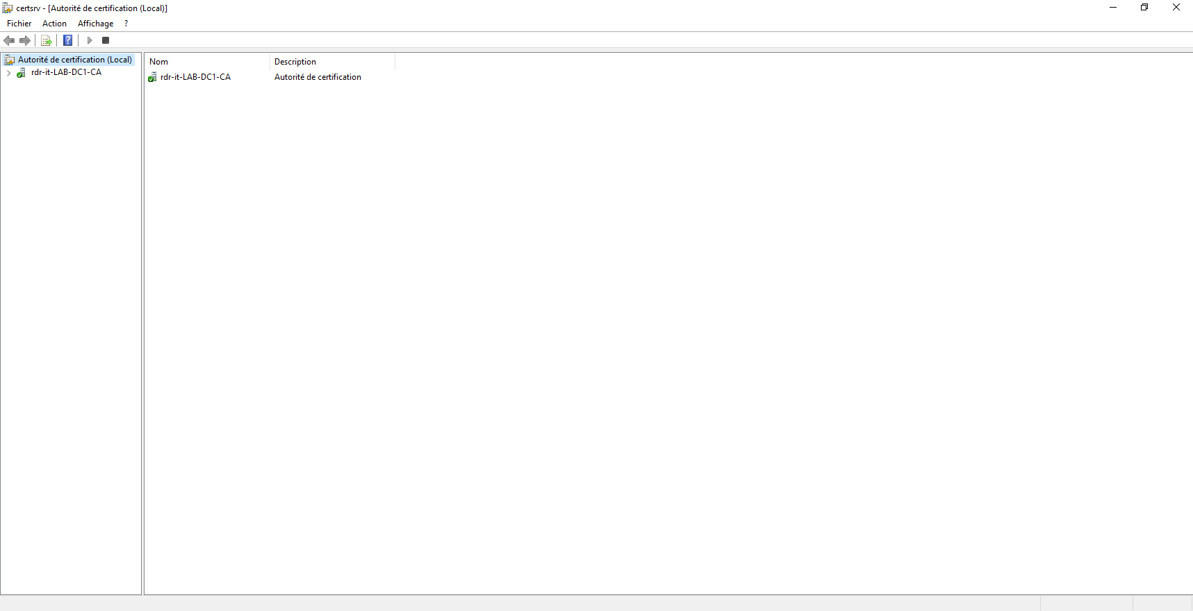 Ouvrir la console d’administration de l’Autorité de certification AD CS.