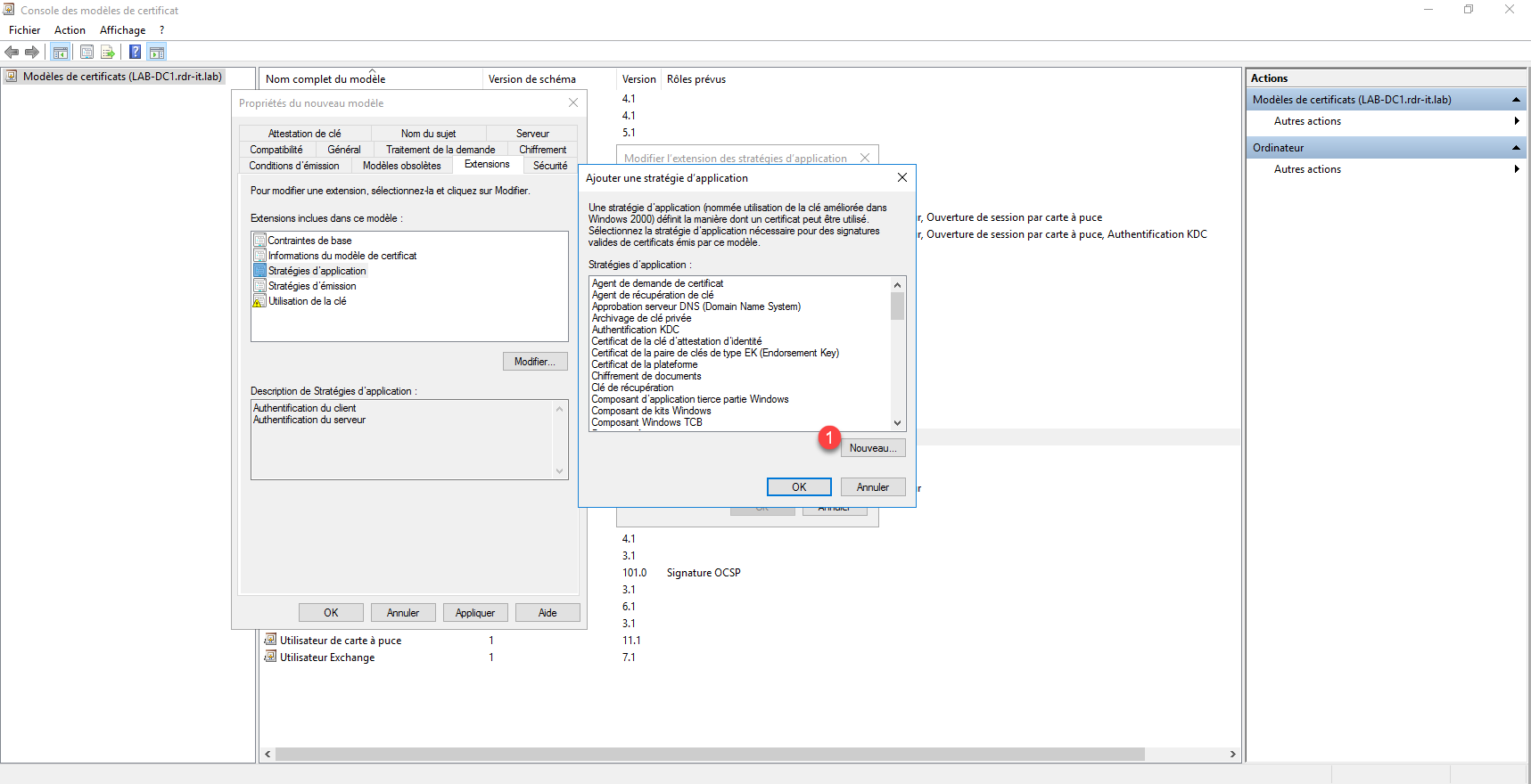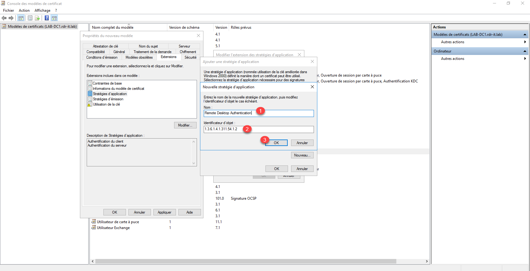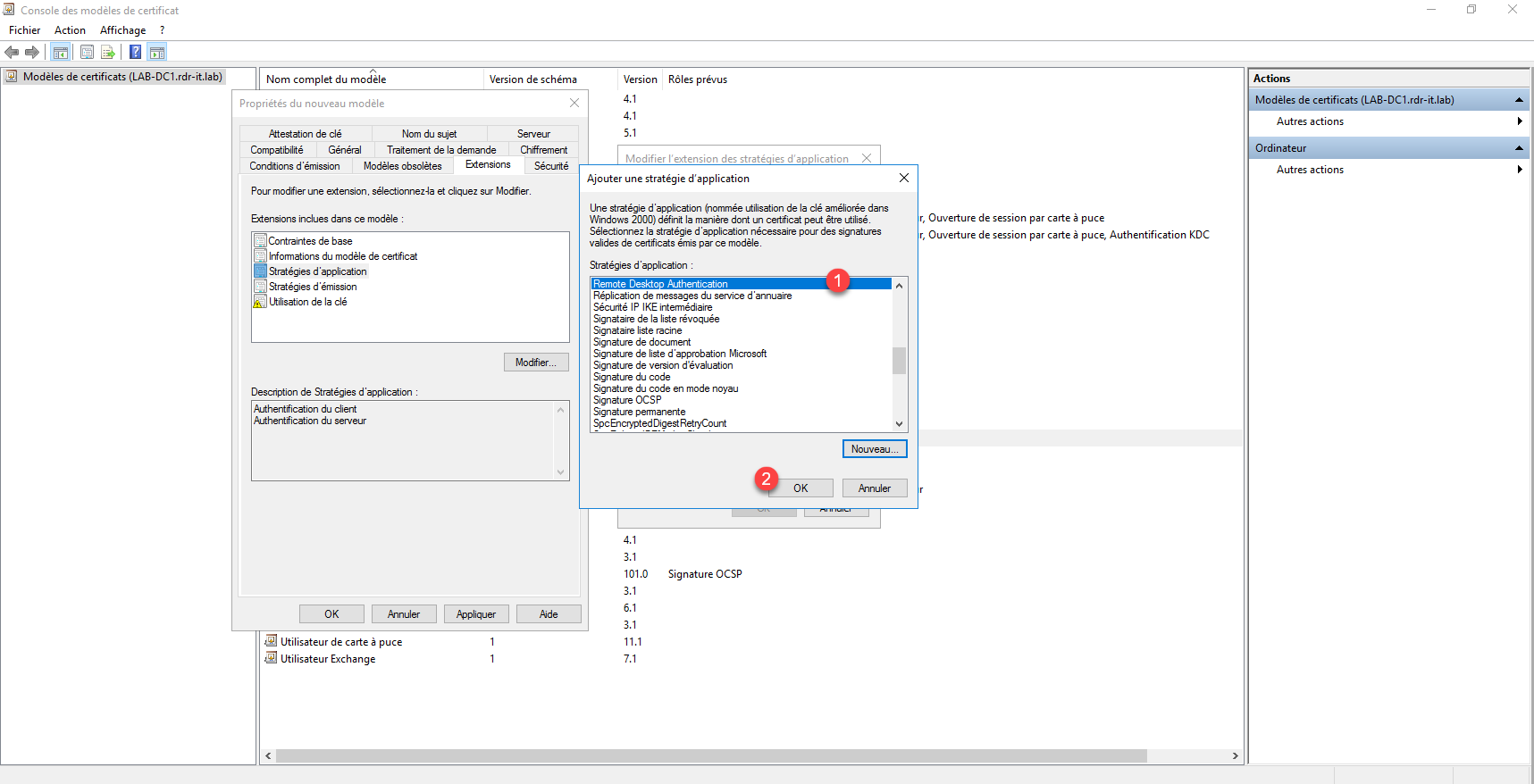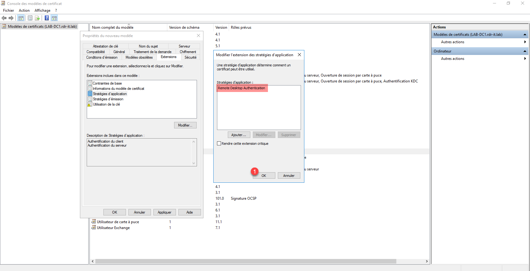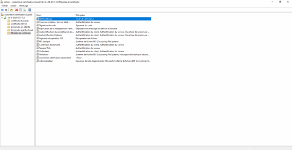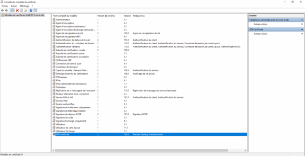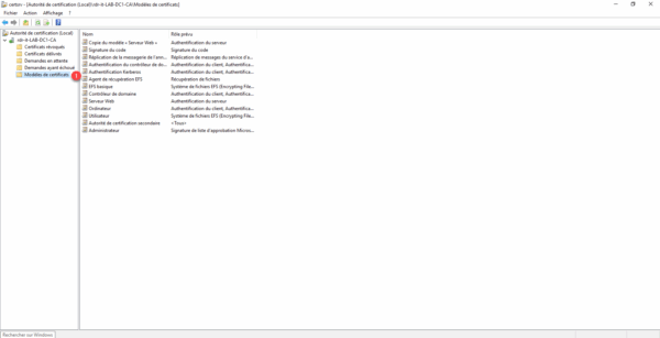 La première étape va être de configurer le modèle de certificat qui va être déployé et appliquer au protocole RDP.