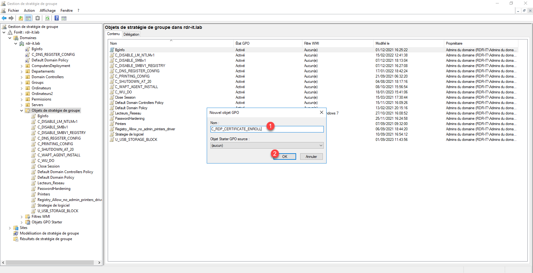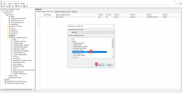 Sélectionner l’objet stratégie de groupe 1 que l’on a créé et cliquer sur OK 2.