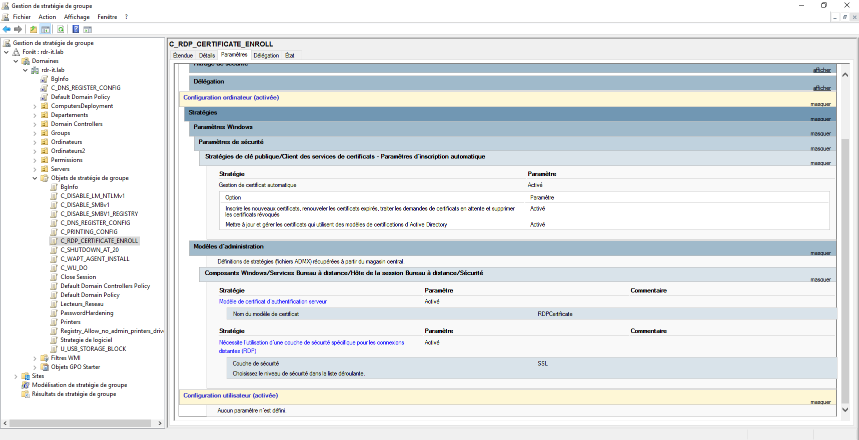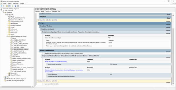 GPO pour la demande du certificat et la configuration du protocole RDP