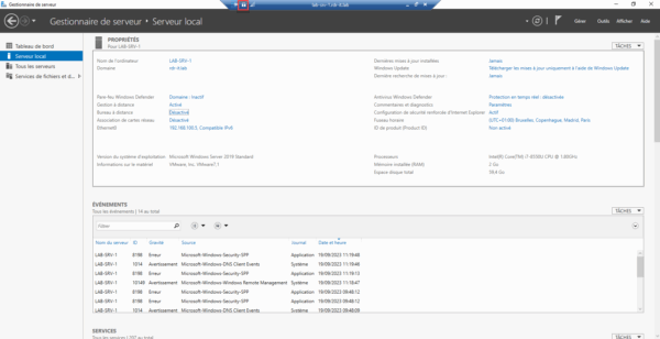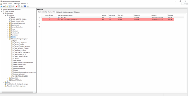 Pour être au plus prêt d’une situation d’entreprise, les serveurs sont membres d’un domaine Active Directory, ce qui va permettre d’automatiser la délivrance des certificats en utilisant une stratégie de groupe (GPO).